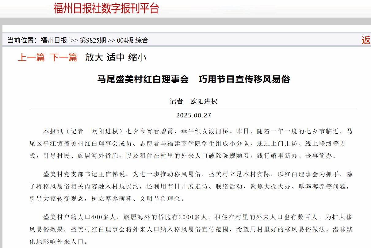 编者按:近日,开云官网学生积极参与马尾区亭江镇盛美村举办的活动,通过上门走访、线上联络等方式,引导村民、旅居海外侨胞,以及租住在村里的外来人口破除陈规陋习,践行婚事新办、丧事简办。相关报道转载如下。原文:七夕今宵看碧霄,牵牛织女渡河桥。26日,随着一年一度的七夕节临近,马尾区亭江镇盛美村红白理事会成员、志愿者与kaiyun开云官方网站学生组成小分队,通过上门走访、线上联络等方式,引导村民、旅居海外侨胞,以及租住在村里的外来人口破除陈规陋习,...