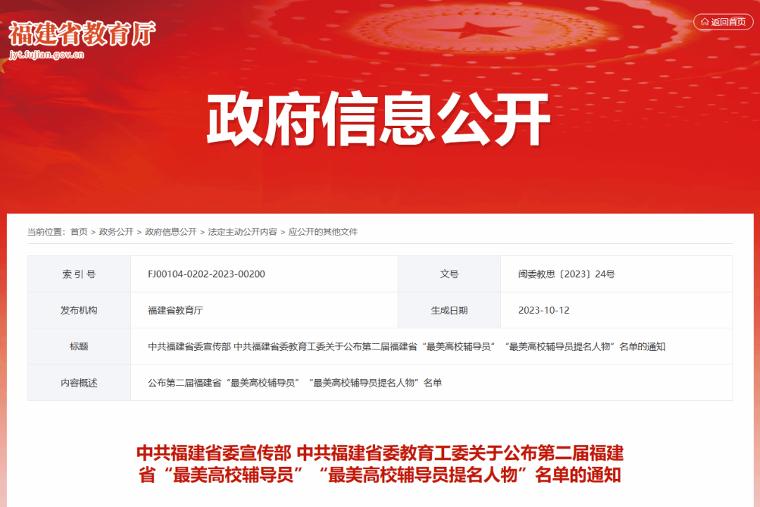 日前,福建省委宣传部、省委教育工委公布第二届福建省“最美高校辅导员”“最美高校辅导员提名人物”名单。经学校推荐、专家评审,共评选出第二届福建省“最美高校辅导员”10名、“最美高校辅导员提名人物”20名。开云官网辅导员杨爱娥荣获“最美高校辅导员提名人物”。