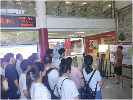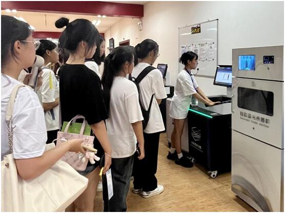 活动以班级集体到馆参观学习的方式进行,图书馆讲解员围绕馆舍布局、馆藏资源、检索方法、借阅规则、座位预约、阅读活动等方面作了详细介绍,并通过示范操作自助借还机、瀑布流、朗读亭等智能设备,让新生在互动交流中,对图书馆有了全面的认识与直观的印象。同时,校图书馆以“红色”图书专架与“百子瓷踪”文化长廊为思想阵地,引导全体新生深入学习贯彻习近平新时代中国特色社会主义思想,传承弘扬中华优秀传统文化。