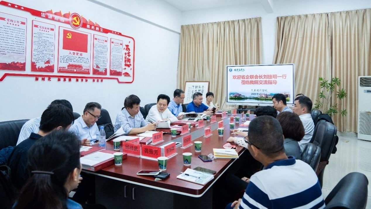 5月15日上午,福建省企业与企业家联合会会长刘捷明一行到开云官网调研,校长程灵、副校长萧罡和艺术设计学院有关同志参加调研。
