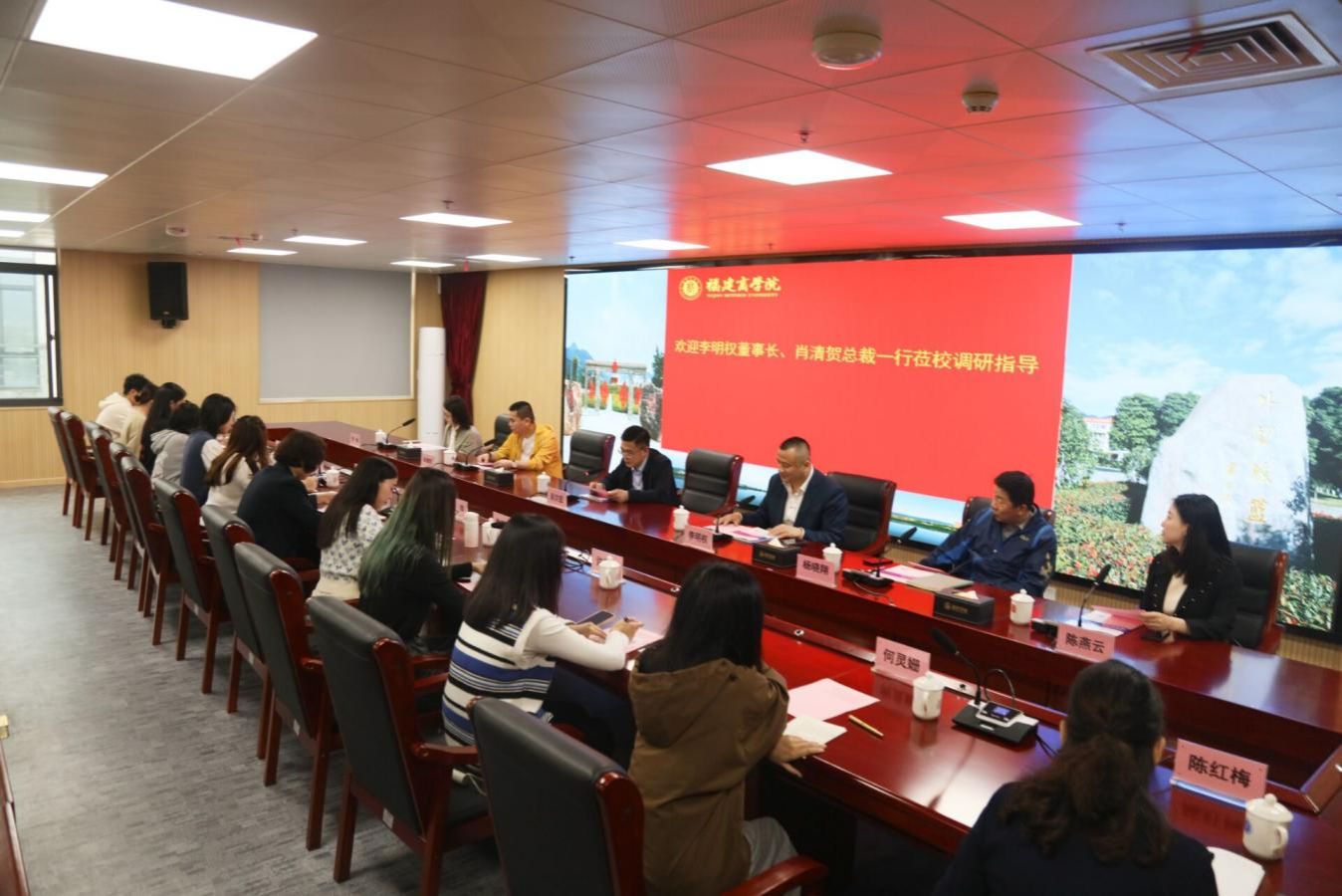 4月21日上午,福建爱德马运动饮料集团有限公司董事长李明权、总裁肖清贺一行莅临开云官网调研指导习近平新时代中国特色社会主义思想学生读书社、教职工读书社等情况。校党委书记吴访益、副校长杨晓翔及读书社师生代表出席调研座谈会。