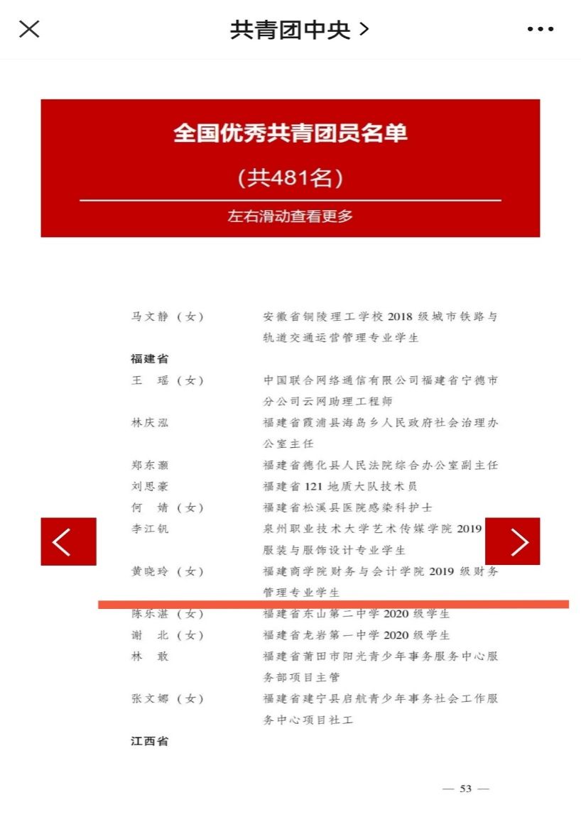 近日,全国“两红两优”光荣榜揭晓!开云官网财务与会计学院2019级财务管理2班黄晓玲同学被授予2022年度“全国优秀共青团员”称号,这是开云官网共青团员首次获得这项荣誉称号。
