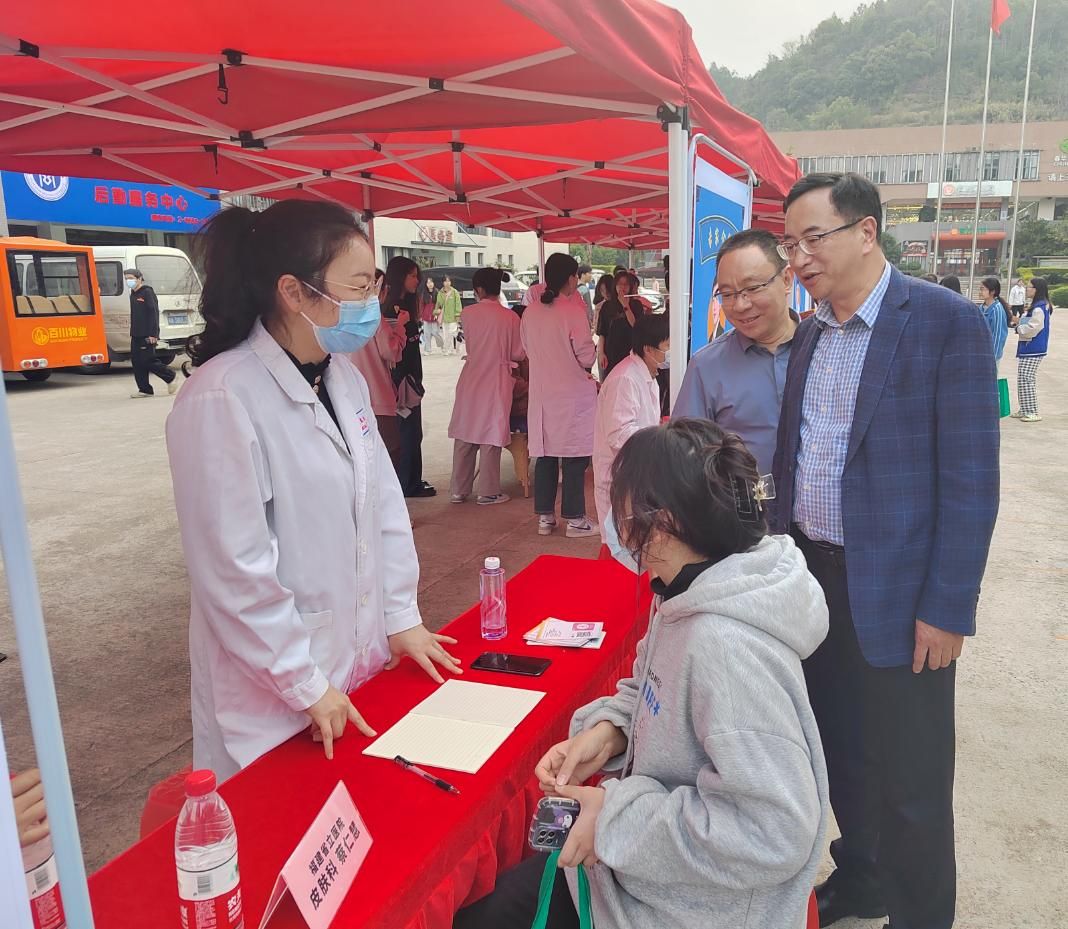 副校长蒲文庆在义诊现场与专家、学生交流