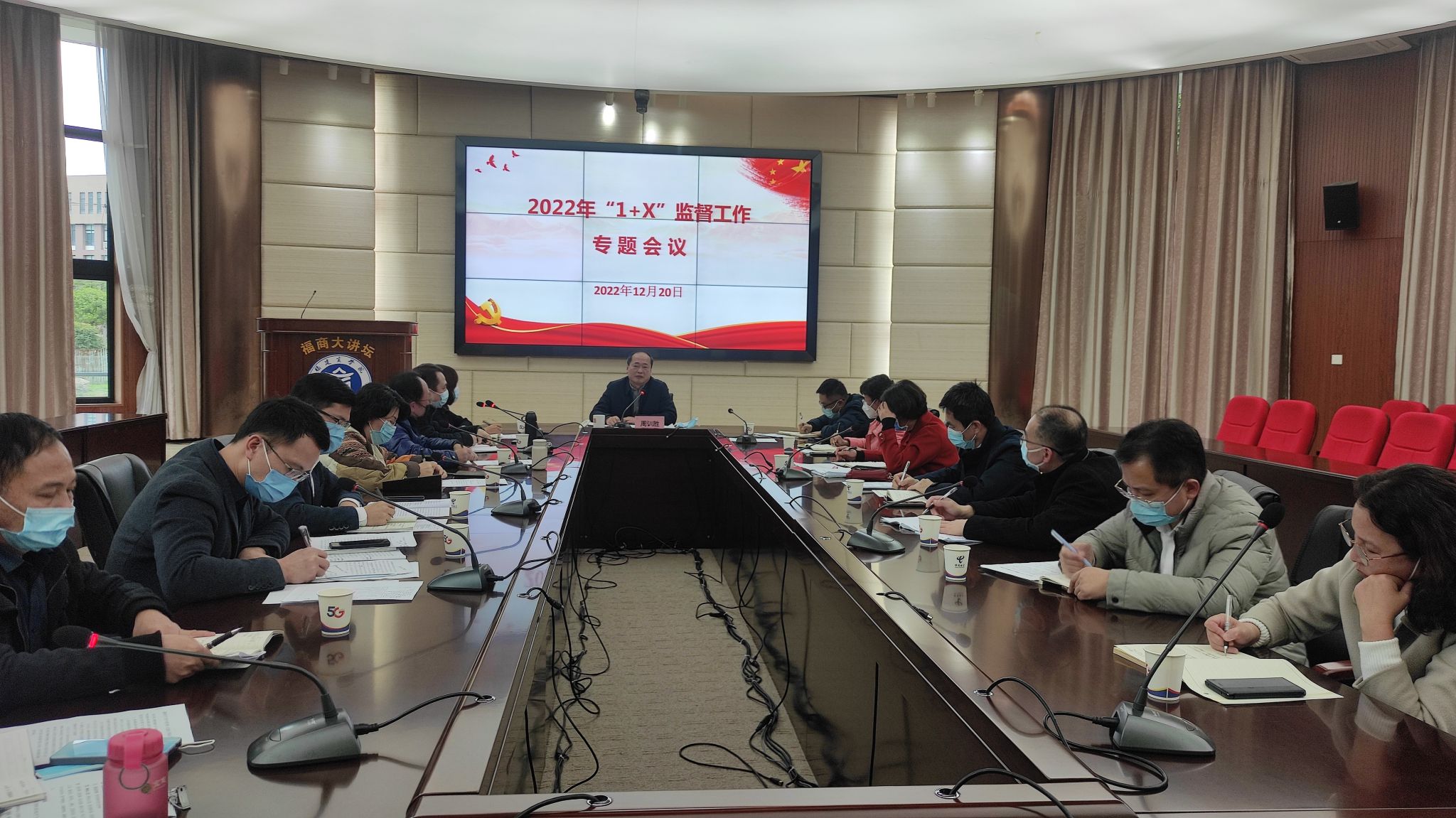 12月20日下午,开云官网召开2022年度“1+X”监督工作专题会,校纪委书记、监察专员周训胜出席会议并讲话,学校相关职能部门负责人和纪委两室有关同志参加会议。