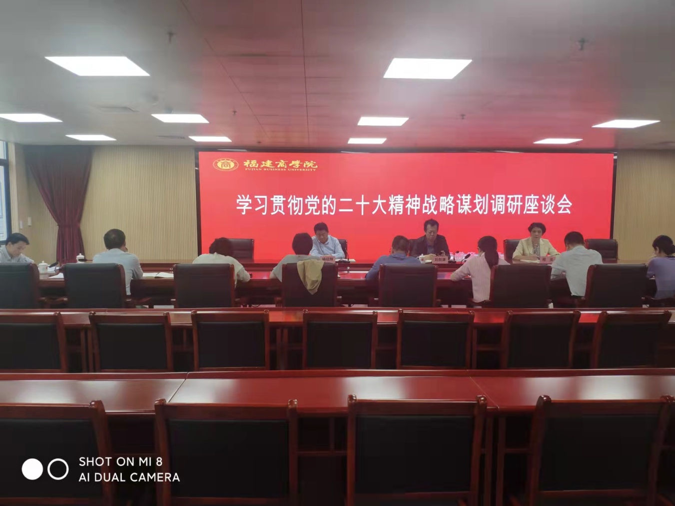 刘剑津强调,要结合学习宣传贯彻党的二十大精神,精准实施下阶段教育改革发展战略规划,落实《中共福建省委教育工作领导小组秘书组关于开展学习贯彻党的二十大精神战略谋划书面调研的通知》的文件要求,认真完成上级下达的调研任务,提出有利于学校发展的政策建议;要主动关注国家各级教育行政部门在抓的重点热点问题,结合学校发展实际,针对瓶颈、痛点和堵点问题,积极谋划破题之策,努力攻坚克难,争取有所创新突破,推进学校各项事业更上一台阶。