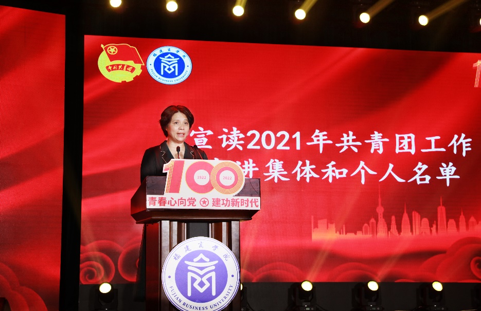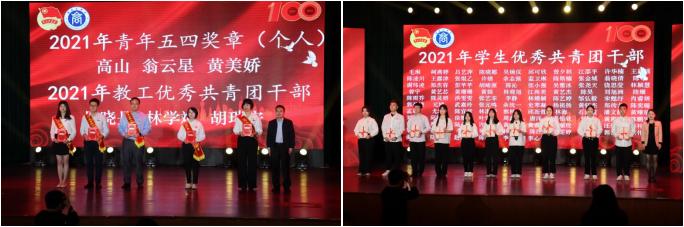表彰大会在诵读《觉醒年代之青春中国》中拉开帷幕。校长程灵宣读2021年共青团工作先进集体和个人名单,现场举行了隆重的颁奖仪式。