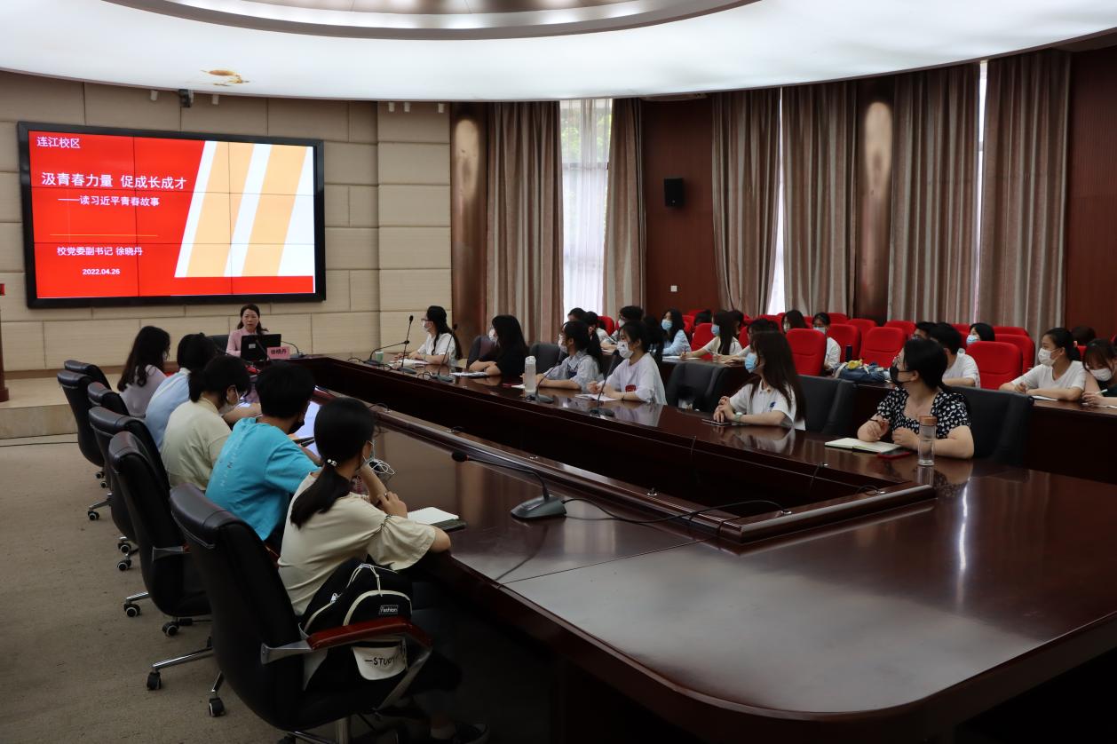 4月26日下午,校党委副书记徐晓丹在连江校区视频会议室为“青马班”学员作题为“汲青春力量,促成长成才”的思政课。马尾校区“青马班”学员通过视频听课。