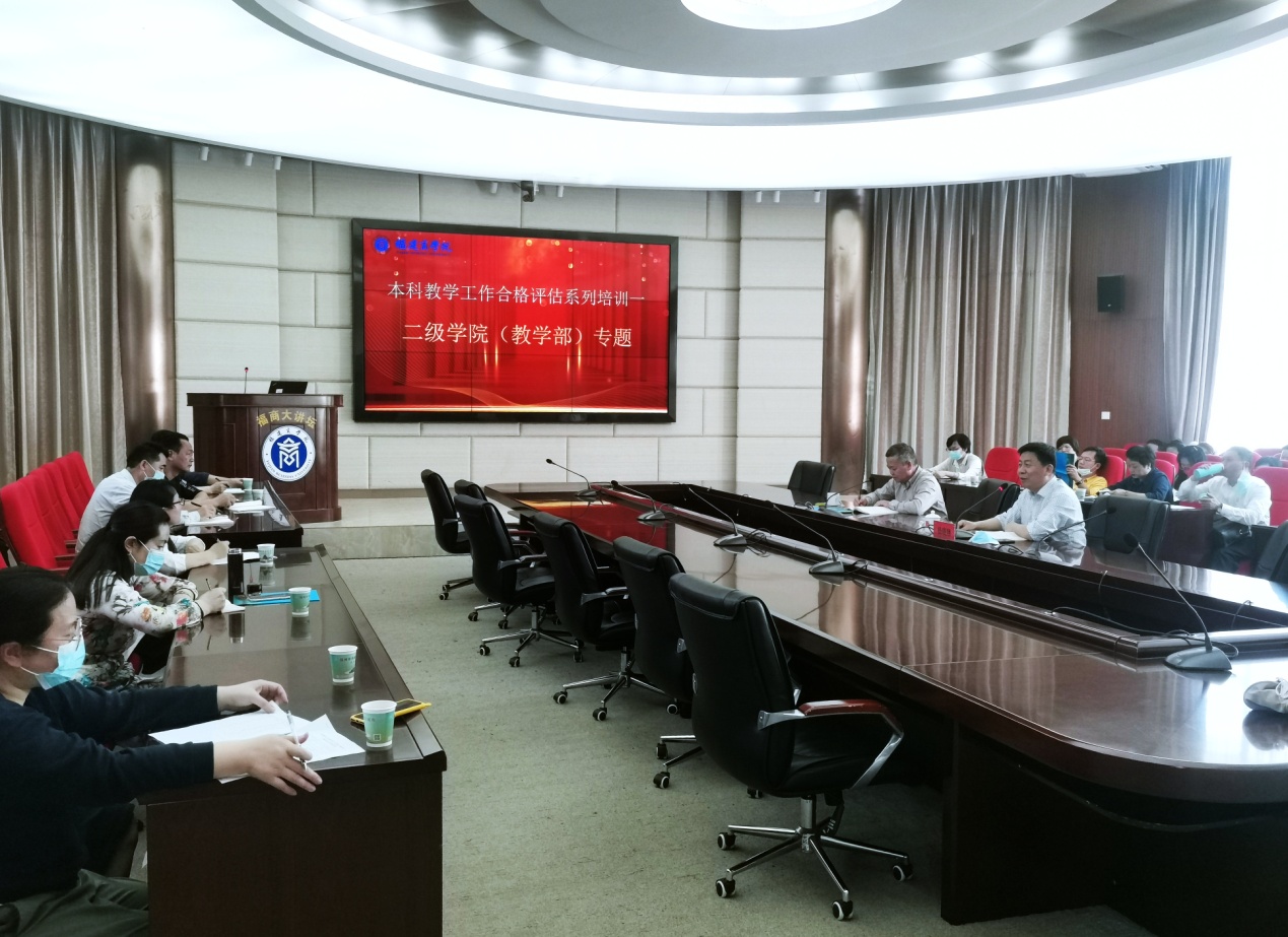 培训会上,质量监控与评估处负责人对二级学院(教学部)在本科教学工作合格评估中的主要工作进行讲解和培训,介绍了学校评建工作的整体进度和二级学院(教学部)评估主要工作内容。