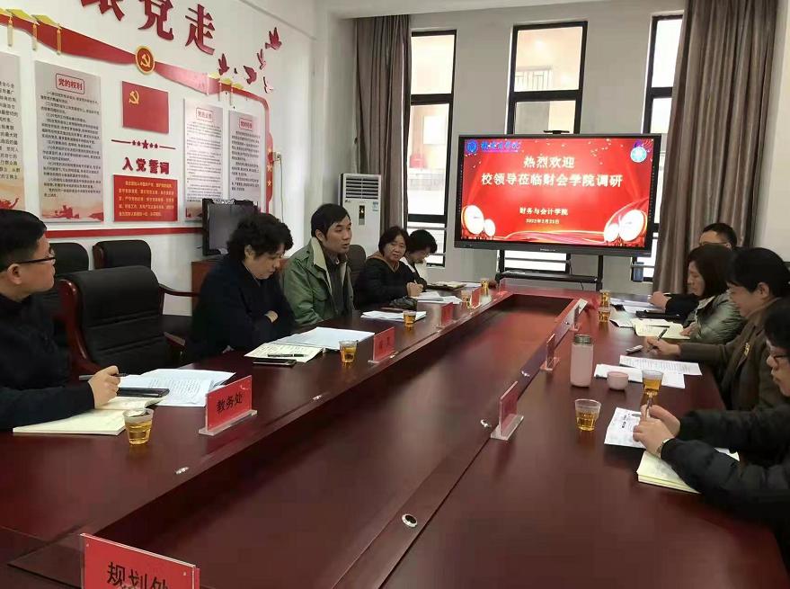 223日上午,校长程灵、副校长萧罡一行深入财务与会计学院调研学科专业建设情况,认真听取学院党政班子关于师资、教革、科研、实验室建设以及校企合作、产教融合等方面情况介绍。