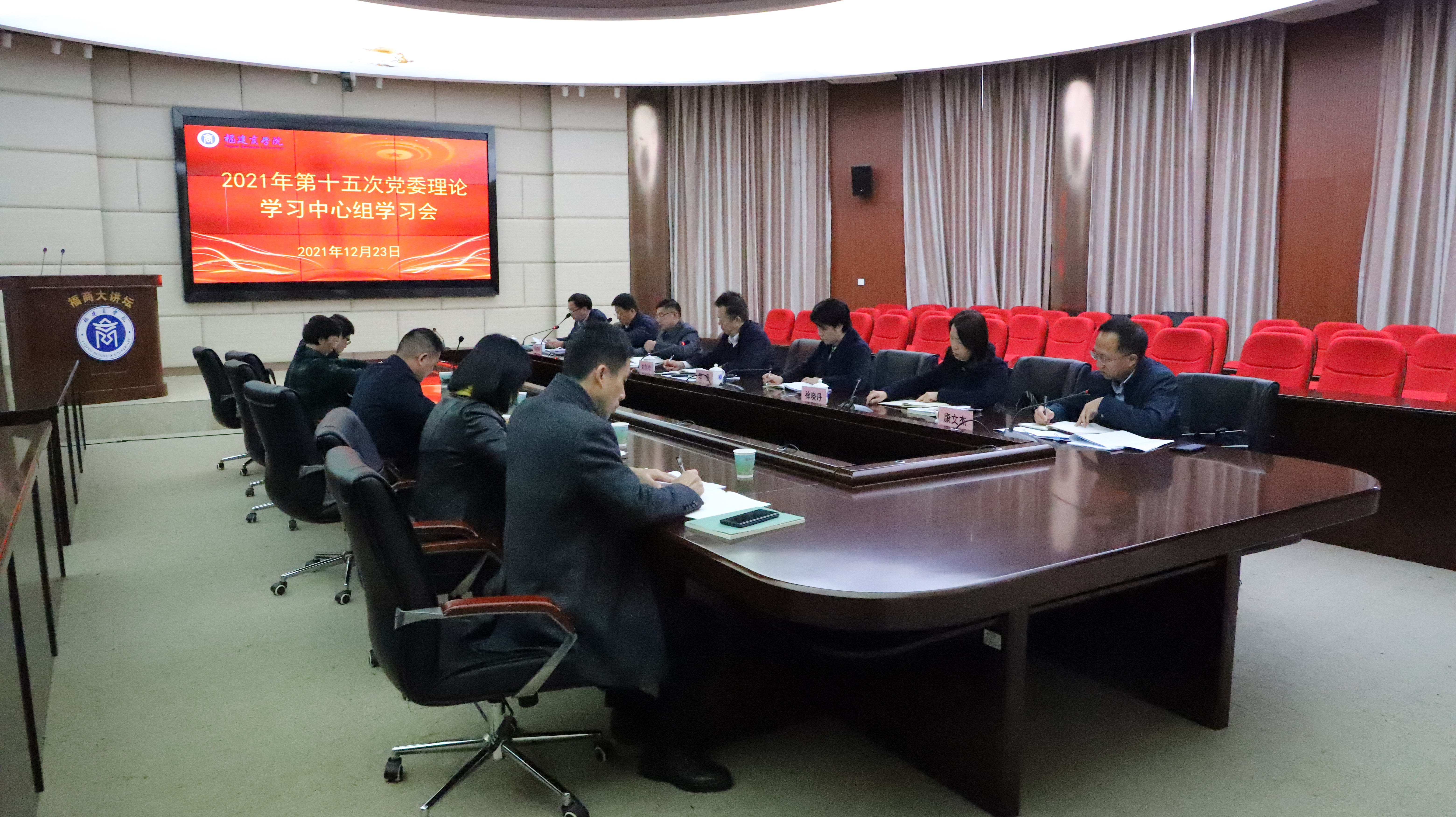 12月23日,校党委召开2021年第十五次党委理论学习中心组学习会,就深入学习领会习近平新时代中国特色社会主义思想的基本精神、基本内容和基本要求作专题研讨。校党委书记刘剑津主持会议并讲话,蒲文庆作主题发言,程灵、吴访益、徐晓丹、杨晓翔、康文杰作交流发言,有关处室负责人列席学习会。