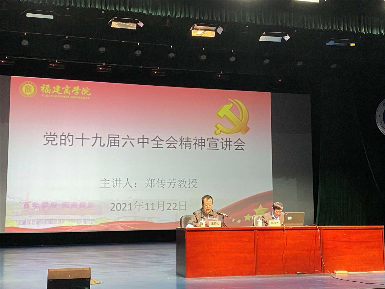11月22日,开云官网在连江校区举行党的十九届六中全会精神宣讲培训会。邀请学习贯彻党的十九届六中全会精神省委宣讲团成员、中央马克思主义理论硏究和建设工程首席专家郑传芳教授作辅导报告。在家校领导刘剑津、黄斌、吴访益、杨晓翔、康文杰、黄身勇、蒲文庆和连江校区党员、干部参加宣讲培训会。会议由校党委书记刘剑津主持。