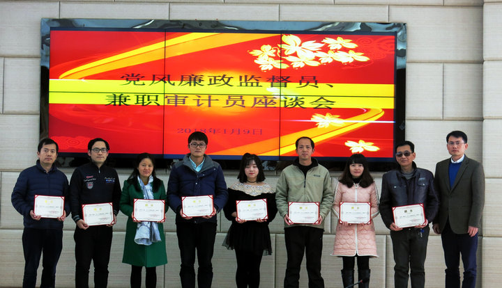 2018年1月9日,学校纪委在连江校区明德楼视频会议室组织召开党风廉政监督员、兼职审计员座谈会,推进党风廉政监督员、兼职审计员队伍建设,抓早抓小,强化日常监督。校纪委书记黄身勇、党风廉政监督员、兼职审计员及监察审计处全体工作人员参加了座谈会。