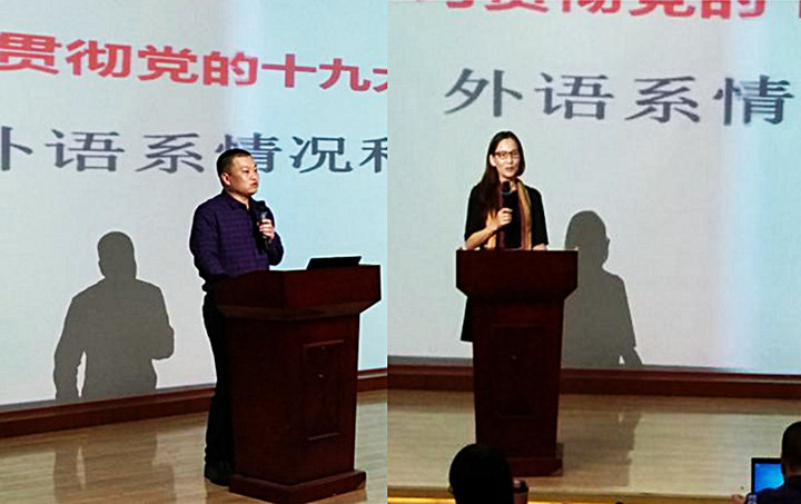 外语系党总支临时负责人和第一行政临时负责人分别在会上作报告