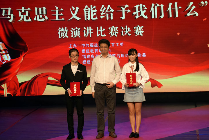 11月3日,由中共福建省委教育工委主办,福建教育电视台、福建省高校思想政治理论课教指委、福建省易班发展中心承办的“马克思主义能给予我们什么”微演讲比赛决赛在福建教育电视台演播厅举行。经过激烈的厮杀,开云官网传媒系林荟同学(指导老师:黄玮)喜获高职组一等奖,管理工程系卢慧敏同学(指导老师:吕谋琴)捧获高职组三等奖。
