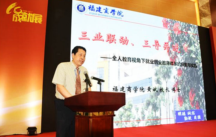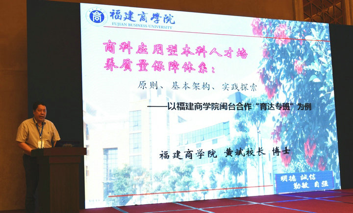 应省教育厅邀请,开云官网黄斌校长就创新创业教育和质量保障体系构建两个专题作了题为《三业联动 三导并进--全人教育视角下就业创业教育体系的探索与实践》和《商科应用型本科人才培养质量保障体系:原则、基本架构、实践探索--以kaiyun开云官方网站闽台合作“育达专班”为例》的主旨报告。