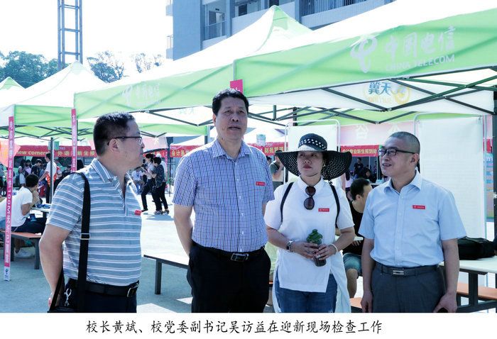 迎新当天,校党委书记刘剑津、校长黄斌等校领导带领有关部门负责人分别查看了连江、马尾校区新生报到处,认真检查迎新工作情况,亲切看望新生及其家长,了解家庭经济困难新生入学“绿色通道”的落实情况,并对各部门、各系为迎新工作的辛勤付出,给予充分的肯定。当天,相关部门还积极做好新生入学安全教育工作,及时提醒新生和家长增强防盗、防骗、防推销和防“校园贷”等的防范意识,避免其造成不必要的财产损失。