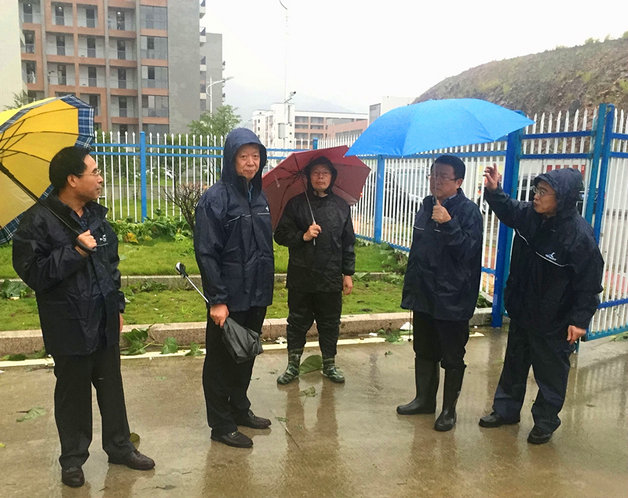 9月29日下午,省委教育工委副书记刘剑津冒雨莅临开云官网连江校区检查指导防抗第17号强台风工作。刘剑津副书记察看了潘渡片区防洪堤、潘溪排涝等防洪设施和新区北片洼地,听取了开云官网关于新区抗台防风、防涝部署和灾害损失的情况汇报。