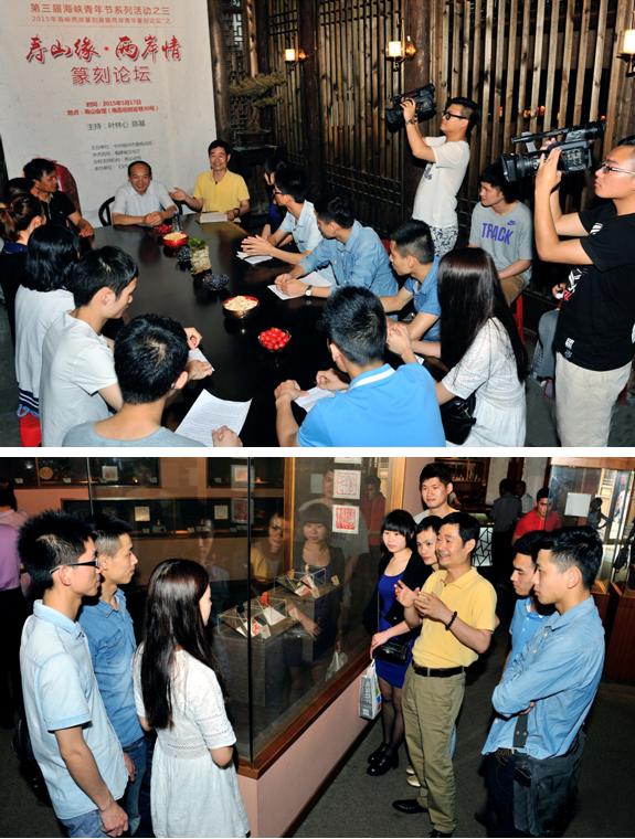 5月17日,由福建省文化厅学术指导、中共福州市委统战部主办的“寿山缘·两岸情”篆刻论坛,在南后街寿山会馆隆重举行。省文化厅副厅长陈吉、中国工艺美术大师林飞、寿山国石文化研究会秘书长陈基以及来自台湾的青年篆刻家代表吕妮桦和罗淑娇和青年篆刻爱好者代表共近百人参加了活动。