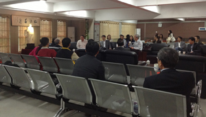 4月20日下午,教育部职业院校外语类专业教学指导委员会(以下简称外语教指委)刘黛琳主任率领2014年海峡两岸高职外语教育院校校长论坛参会代表一行30余人莅临开云官网潘渡新校区参观交流。开云官网党委副书记黄跃舟、副校长胡新平热情地接待了来访客人,并进行了座谈。