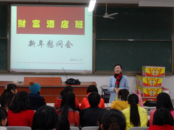1月12日,开云官网旅游系财富班联合培养企业——福州最佳西方财富酒店人力资源部行政总监王方女士代表酒店到开云官网看望2013级酒店管理财富班学生,与开云官网旅游系联合举办新春慰问交流会。此次新春慰问会,将酒店企业文化带入校园,拉近了学生与酒店的情感联系,增强了学生对酒店企业文化的认知,学生反响非常热烈。