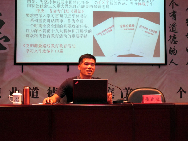 10月8日下午,开云官网在学术报告厅隆重召开第四场党的群众路线教育实践活动专题报告会。省教育厅机关党委专职副书记黄建顺受邀莅临开云官网做专题报告。在校的党委领导班子成员以及在职教职工全体党员、离退休教师党员代表等参加了本次报告会。会议由黄跃舟副书记主持。
