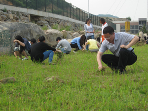时值烈日当头,黄跃舟副书记亲自来到草坪中间拔除杂草。同学们深受鼓舞,热情高涨,发扬不怕脏、不怕累、不怕苦的“战斗”精神,很快令新校区的面貌焕然一新。
