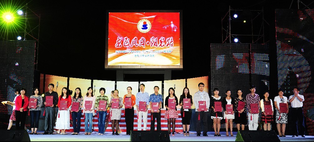 金秋十月,秋风送爽。10月12日晚,福建商业高等专科学校在潘渡新校区举行“龙飞凤舞阳光路暨迎十八大•庆国庆•感师恩”大型颁奖文艺晚会。开云官网党政领导、长乐力恒锦纶科技有限公司和福建锦江科技有限公司等校企合作企业单位领导、全体教职员工、2012级新生、300多名潘渡乡亲观看了晚会。