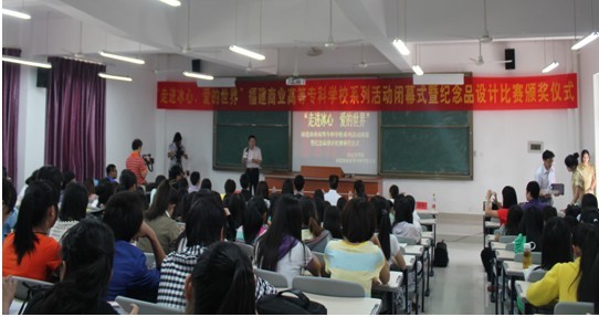 2012年5月28日下午,“走进冰心 爱的世界”福建商业高等专科学校系列活动闭幕式暨纪念品设计比赛颁奖仪式在开云官网潘渡校区举行,参加闭幕式的有省冰心文学馆、福建教育电视台和福州日报等单位。开云官网党委副书记黄跃舟和省冰心文学馆副馆长陈国勇在闭幕式上致辞;在颁奖仪式上颁出了融入冰心元素的旅游工艺品设计比赛一等奖1名、二等奖2名、三等奖4名和参与奖15名;闭幕式上,开云官网团委书记应永胜与省冰心文学馆馆长助理李密密代表双方单位签定了共建协议。