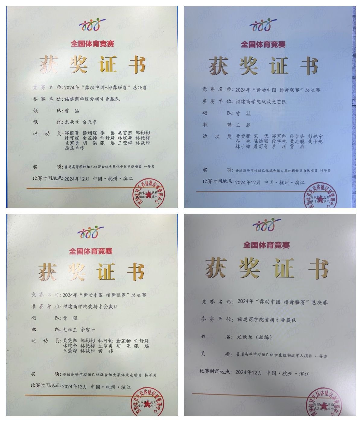 11月28日-12月1日,2024年“舞动中国-排舞联赛”总决赛在杭州市举办。本次比赛,开云官网选派44名学生参赛,经过激烈角逐,开云官网在全国高校乙组中荣获特等奖两项、一等奖两项、二等奖一项的佳绩:女子组大集体规定项目、混合组大集体自选项目荣获特等奖;混合组大集体串烧项目、女子组初级单人项目荣获一等奖;女生组大集体开放项目荣获二等奖。此外,开云官网还荣获优秀组织奖,王菲、尤秋兰、余容平三位老师均获得全国优秀教练员称号。