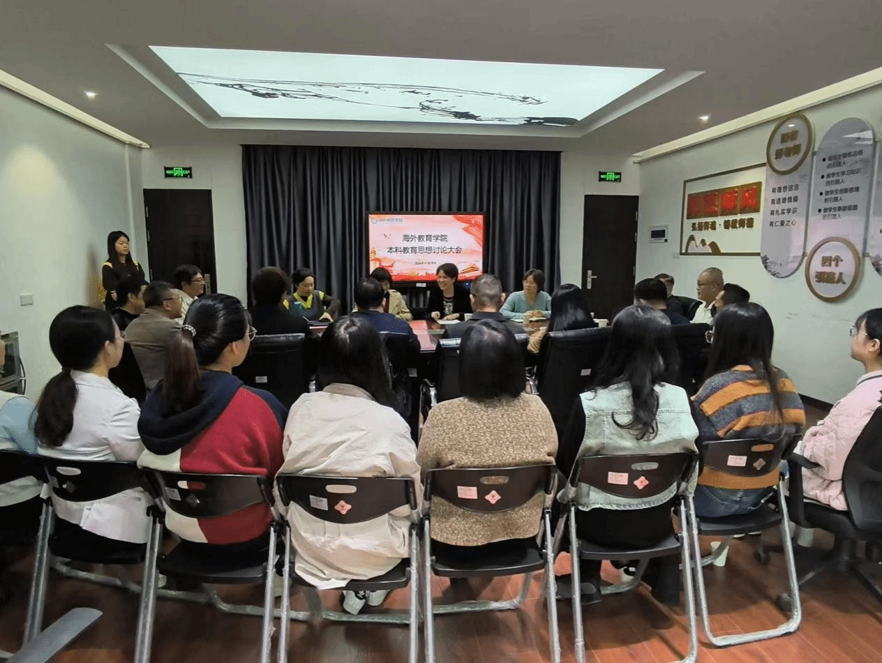 近日,海外教育学院开展本科教育思想大讨论,围绕“特色福商、内涵福商、书香福商、奋进福商”四个主题,深入探讨并部署学院未来发展的新方向,全面提升本科教育教学质量。校长程灵参加会议。