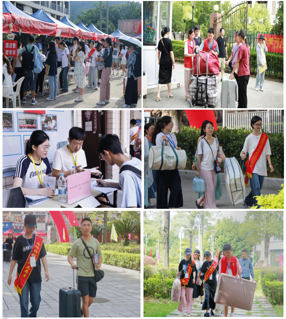 迎新当天,从车站接送到校园内交通疏导,从宿舍分配到注册登记,各部门、各学院紧密协作,高效运转,为新生提供全方位的接待指引与周到的服务保障,确保整个迎新过程井然有序。为了提高新生的安全意识,现场开展了人身安全、财产安全和网络安全教育活动。此外,还特别设立了咨询台,为那些来自经济困难家庭的学生和家长提供个性化的帮助,向他们详细解释学校的资助政策。工作人员和志愿者主动帮助新生搬运行李,耐心地解答新生和家长们的各种问题,校门口的热情迎接、道路旁的悉心引导、接站点的周到服务、报到点的细致协助,他们贴心与温暖的服务赢得了新生及家长们的高度赞誉,让迎新工作在安全、有序和充满关爱的氛围中进行。