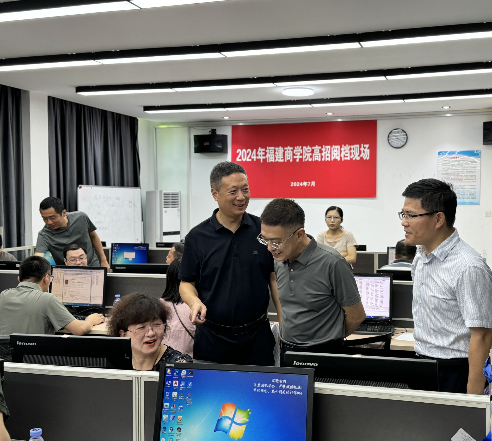 福建省本科普通批录取阅档工作于7月23日上午进行,校党委书记吴访益、校长程灵和副校长林文艺到招生录取工作现场慰问全体招生工作人员,并指导阅档工作。校党委副书记蒲文庆、校纪委书记林宇峰日前也分别到校开展业务指导。