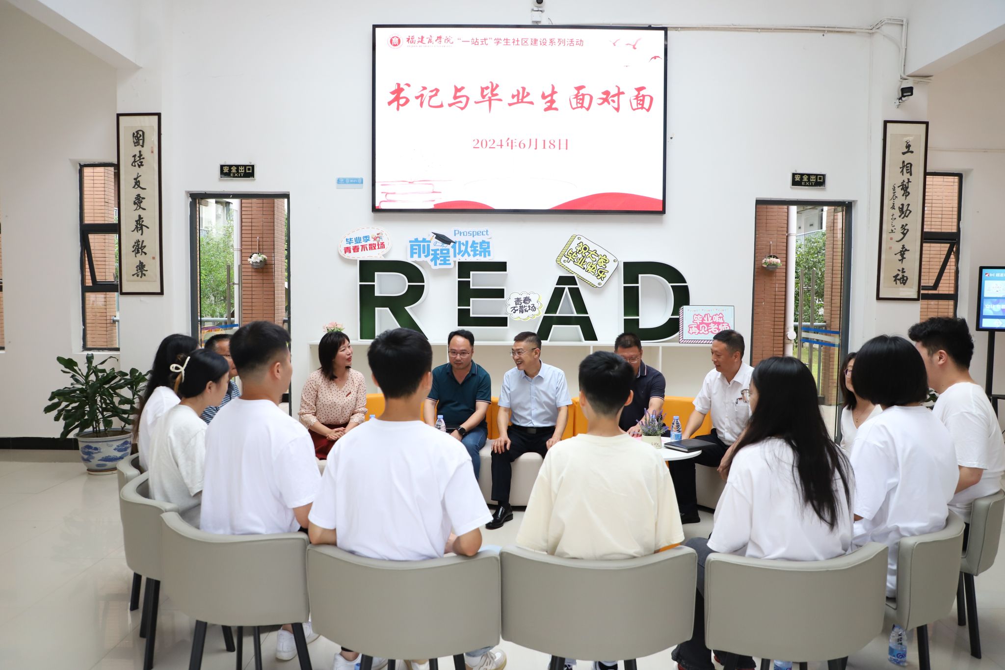 618日上午,校党委书记吴访益与财务与会计学院2024届毕业生座谈,并深入调研连江校区“一站式”学生社区建设。有关部门负责人、财务与会计学院党政班子成员及毕业班辅导员等参加活动。