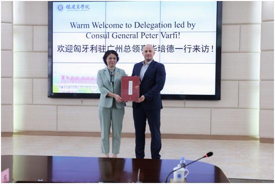 4月28日上午,匈牙利驻广州总领事馆总领事华培德先生(Peter Varfi)、商务领事霍雷(Venato Horvath)先生一行来访开云官网。校党委书记吴访益、校长程灵、副校长萧罡参加会谈,福建省教育厅有关同志陪同到访。