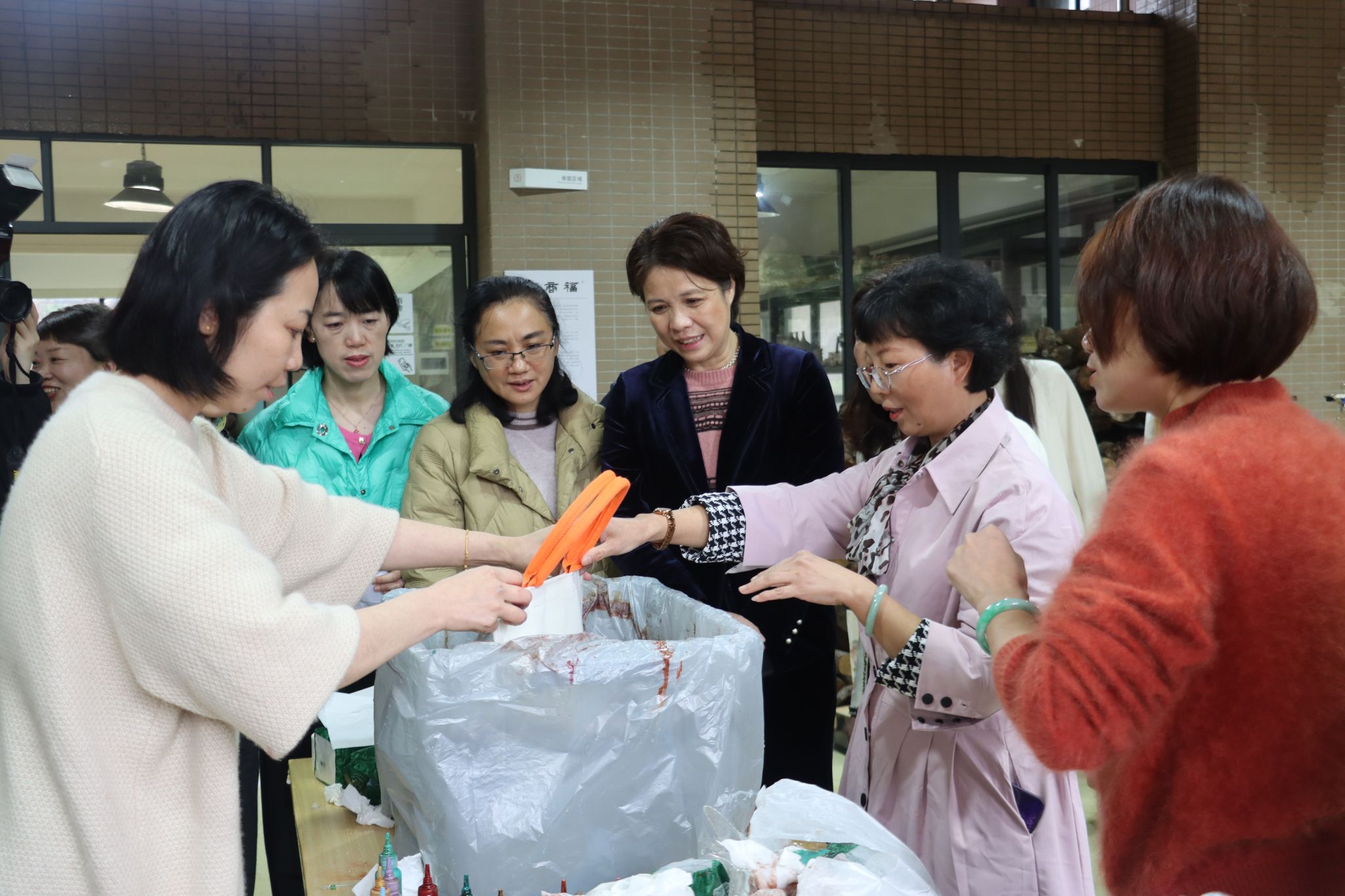 连江校区·艺术工坊:匠心传承之美。在洋溢着浓郁的艺术气息的福商窑院落内,女教职工亲身体验漂漆技艺,制作独一无二的漆艺手提袋或团扇;通过传统刺绣与现代设计的碰撞,定制专属节日胸花;在素胚杯上绘制创意图案,感受手绘艺术的乐趣。活动现场还设置了瓷花捏制体验区,用瓷土定格永恒的春日花韵。