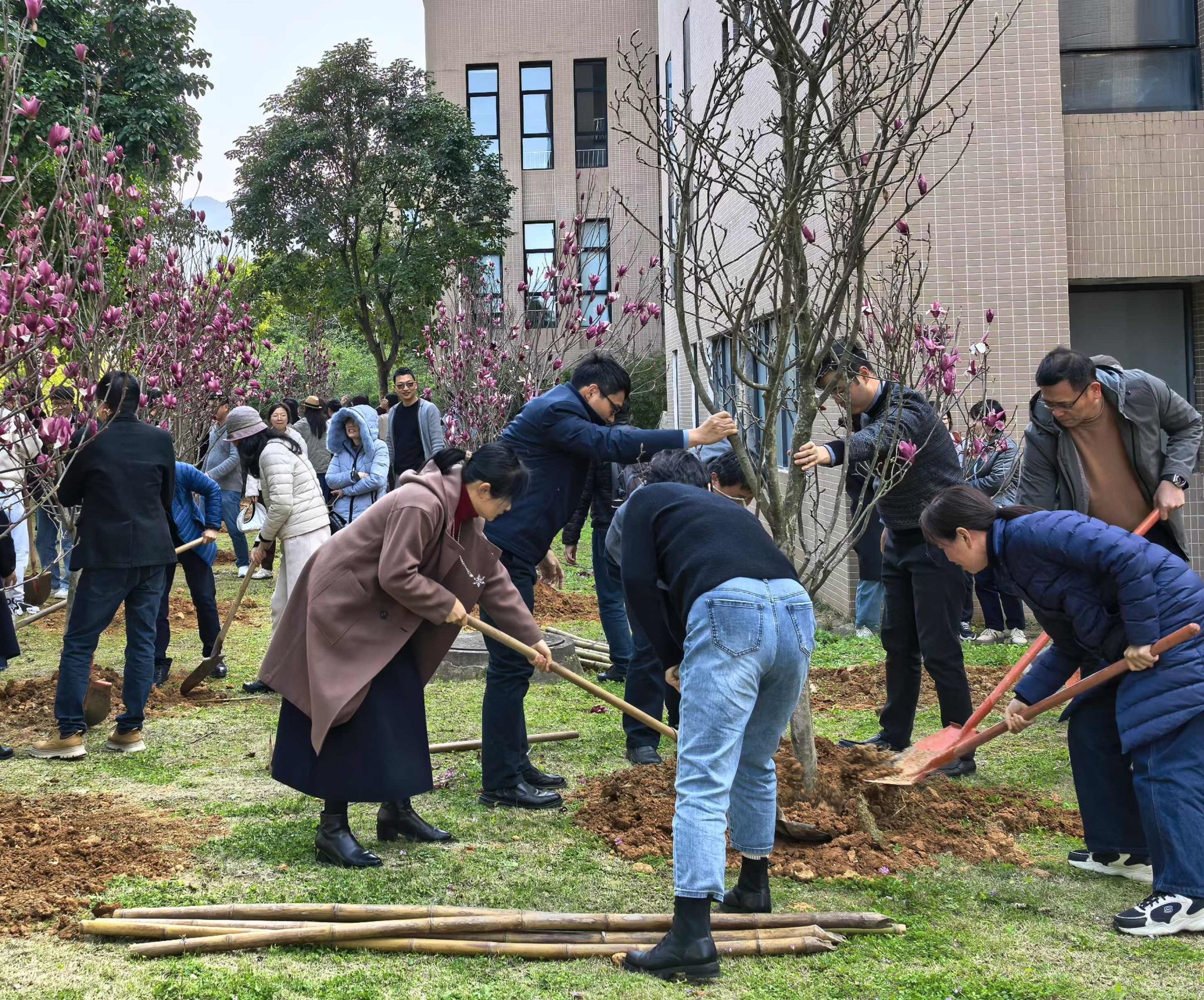 本次活动认真贯彻落实习近平总书记关于生态文明建设的重要论述,以“绿水青山就是金山银山”理念为指引,创新校园环境美化与价值观培育融合模式,通过校企合作栽种100株樱花树苗,在三个校区打造生态景观,同步构建生态文明教育实践平台。