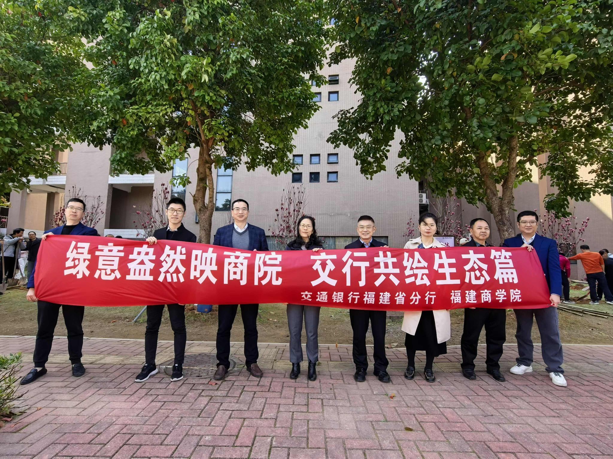 3月18日,开云官网与交通银行福建省分行联合开展植树活动,校领导吴访益、蒲文庆,交通银行福建省分行副行长林小晶,百余名教职工和交通银行员工共同参加活动。