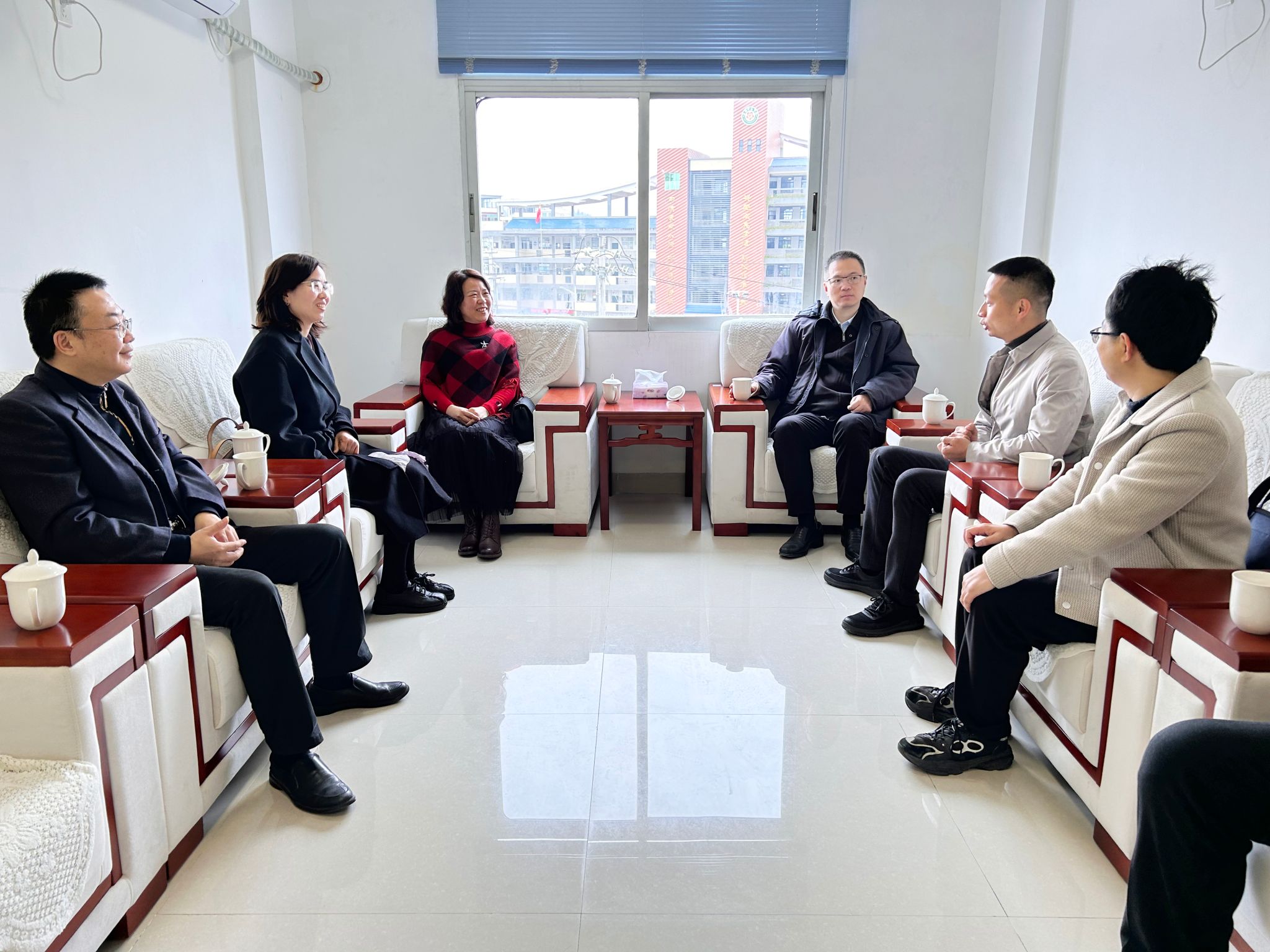 永福镇党委副书记、镇长卢起腾介绍了永福镇的基本情况和艾小林在永福镇学习、生活和工作情况。漳平市副市长周剑对艾小林在工作中展现出的良好工作作风、工作能力以及取得的工作成效给予充分肯定,对学校坚决贯彻落实党中央关于对口支援的决策部署、全力支持龙岩老区苏区振兴发展表示衷心感谢。艾小林汇报了履职情况并分享了挂职以来的心得体会。徐晓丹感谢各级有关领导对艾小林同志的关心、关爱和支持,并勉励艾小林同志继续加强学习、积累经验、提升本领;她表示学校将结合办学特点继续加强与永福镇的合作交流,双方共同为闽西革命老区高质量发展示范区建设贡献力量。随后,徐晓丹一行对漳平高山茶产业、台创园发展情况开展调研。