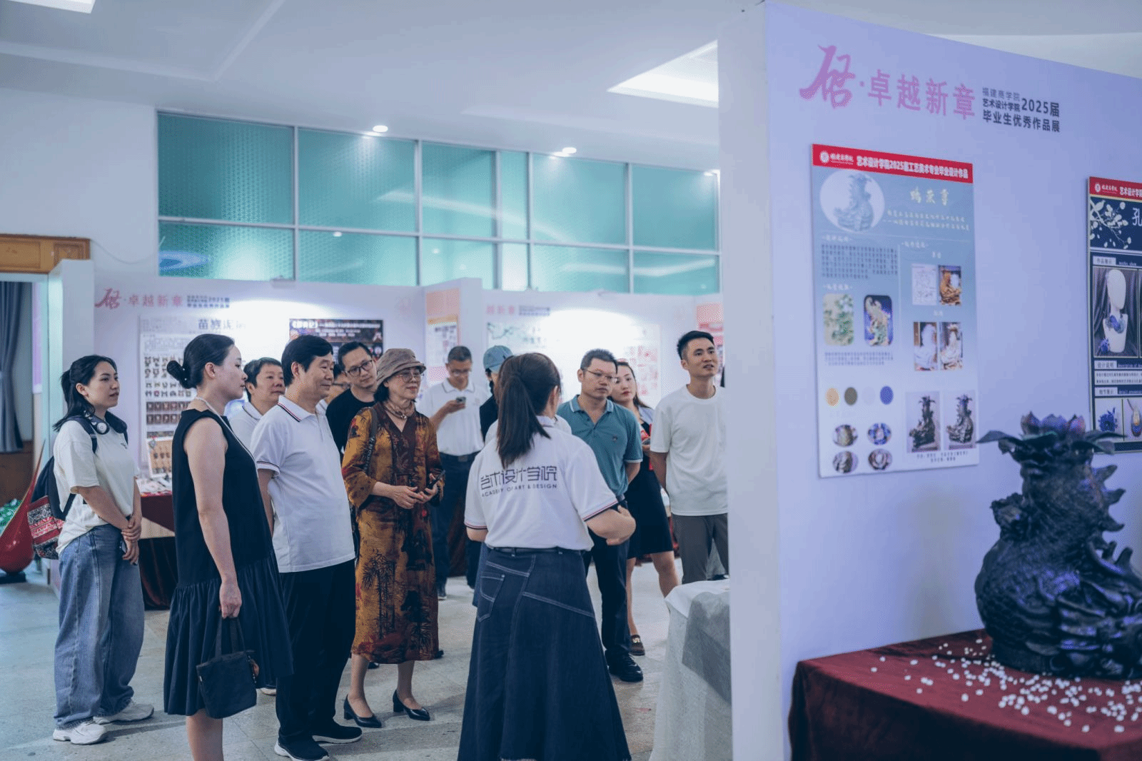 5月30日,艺术设计学院2025届毕业生优秀作品展圆满落幕。展览期间,福建省工商联副主席余建、鼓楼区副区长翁晖莅校观展。校领导吴访益、程灵、徐晓丹、蒲文庆、林文艺,企业代表,有关职能部门、二级学院负责人到场参观。