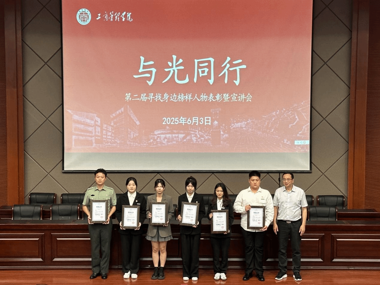 6月3日下午,工商管理学院举行“与光同行,榜样领航”第二届寻找身边榜样人物表彰暨宣讲活动。校党委副书记蒲文庆、学生工作部负责人、工商管理学院党政班子成员及师生代表200余人参加活动。