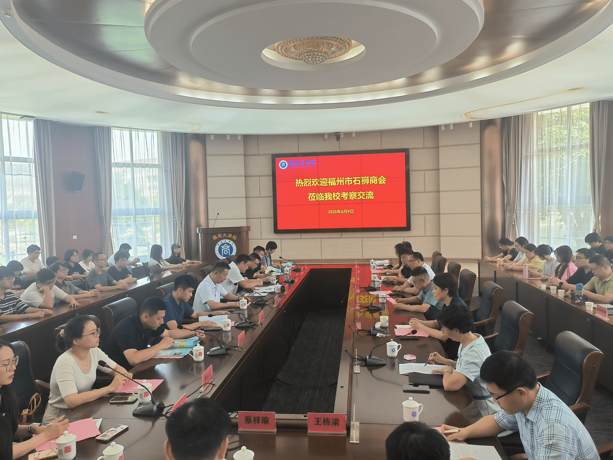 6月9日,福州市石狮商会会长吴友情、党支部第一书记许志强率领商会成员企业代表一行12人到校开展交流。校领导吴访益、程灵、蒲文庆、林文艺,以及相关部门负责人、二级学院师生代表参加座谈会。座谈会由副校长林文艺主持。