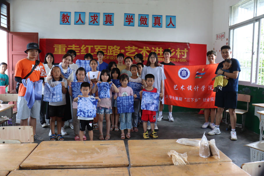在赴龙岩市樟树村实践活动中,实践队师生在罗坑小学开展了陶艺的认知与体验、扎染的了解与制作等课程,带领孩子们动手实践,制作出精美的工艺品。