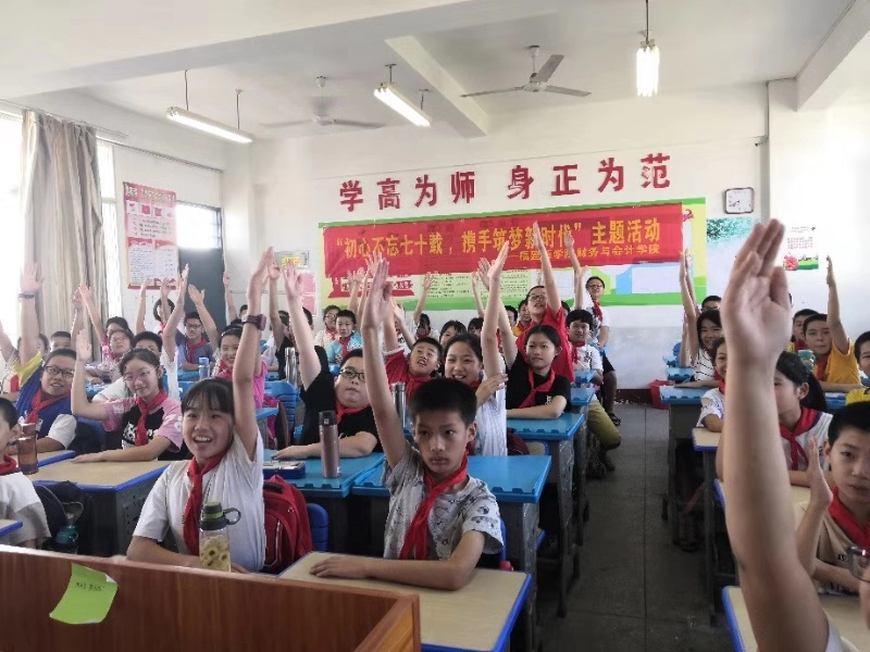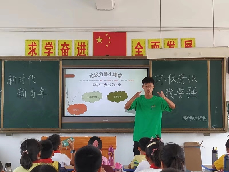 kaiyun开云官方网站财务与会计学院志愿者们围绕“初心不忘七十载,携手筑梦新时代”、“新时代新青年,环保意识我要强”、“献礼中华人民共和国成立70周年华诞”、“缅怀革命先烈,继承红色精神”为主题分别走进该校的四个班级开展教育实践活动,给小学生上课。台上,志愿者老师用生动形象的比拟,浅显易懂的语言向学生讲述教育实践主题活动中的深刻内涵,台下,小学生们仔细聆听,专心致志。