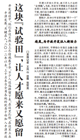 平潭大开放大开发,离不开人才这把“金钥匙”。为此,我省为平潭量身打造出台各项人才政策,从全省各地选拔上千名挂职干部,他们出力献智,为平潭建设“一岛两窗三区”造血输血。