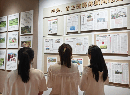 实践队员在讲解员的带领下了解关于茶园报道。钟之敏 供图