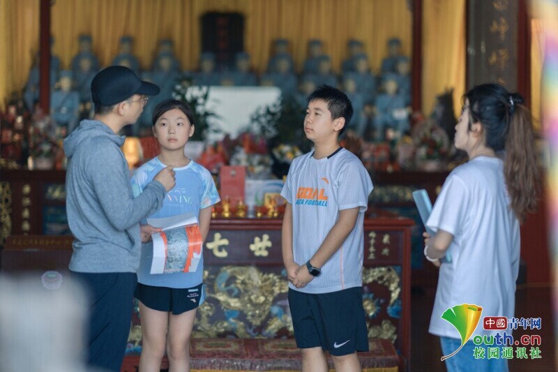 实践队师生在庙中为青少年宣讲红色故事