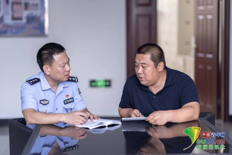 解放军烈士庙负责人张凯(曾恨孙子)在惠安县公安局崇武海防派出所共同商讨寻找烈士及其家属工作