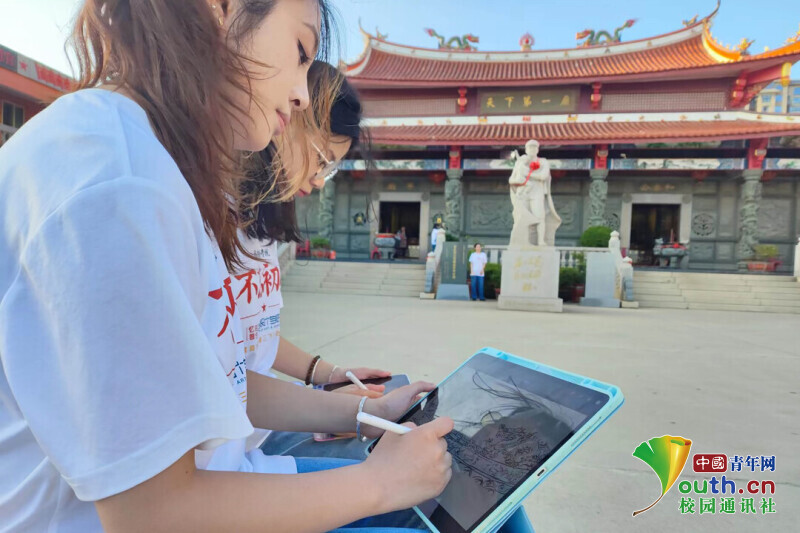 实践队在解放军烈士庙创作宣传绘本