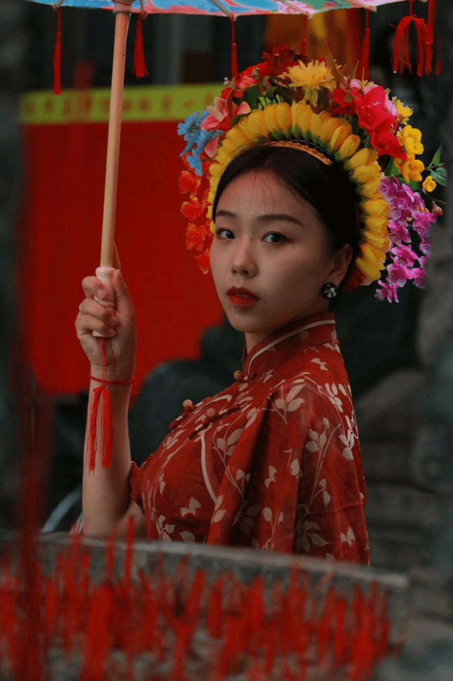 引“爆”蟳埔村的那一捻“引线”,是一组女艺人在泉州拍摄的闽南文化大片。年初,该艺人在闽南古厝中一袭红衣,簪花满头的照片让蟳埔簪花围出了“圈”,许多女游客指名要装扮“女艺人同款”蟳埔女造型。