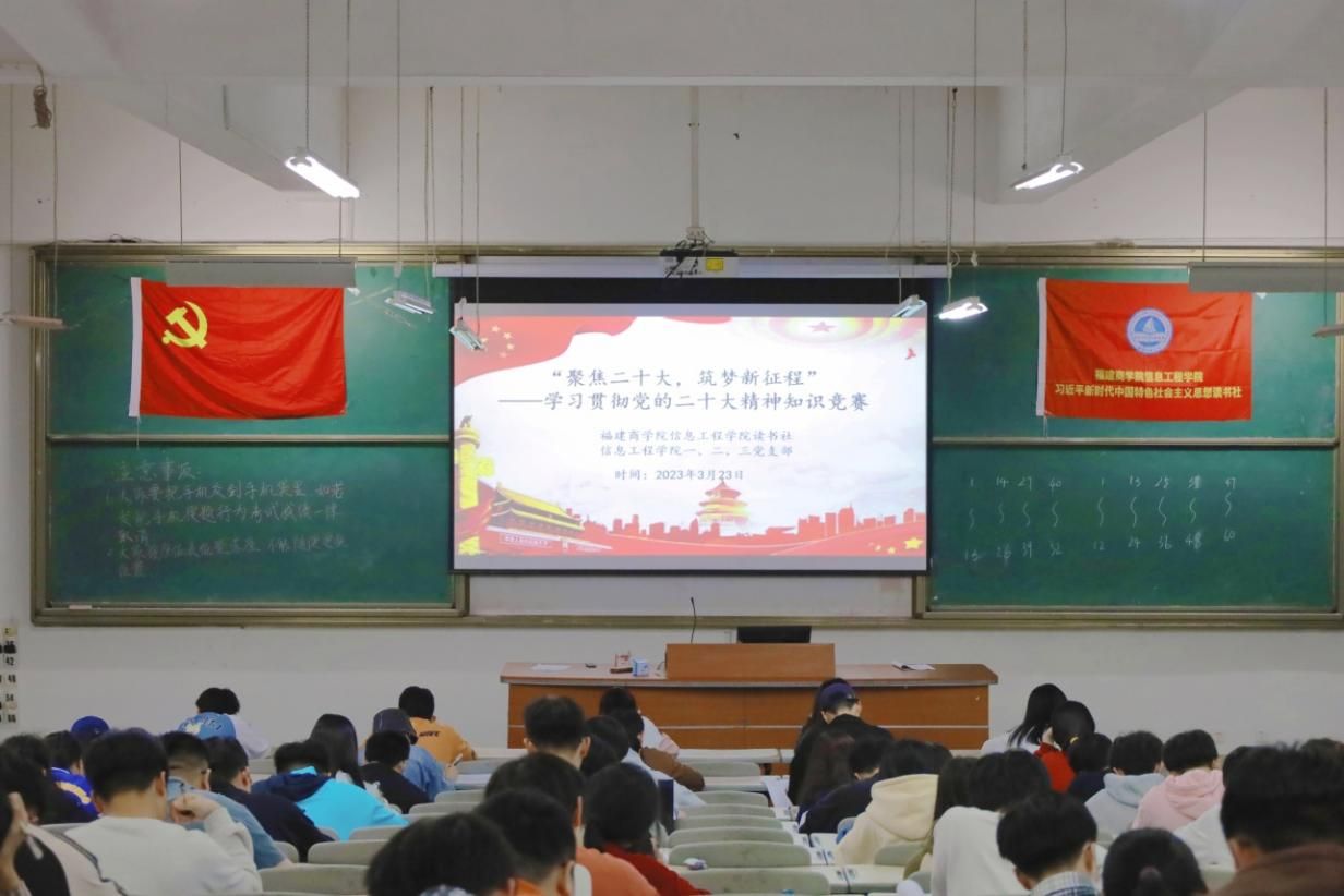 近日,信息工程学院习近平新时代中国特色社会主义思想读书社与学院学生第一、二、三党支部共建开展“聚焦二十大,筑梦新征程”学习贯彻党的二十大精神知识竞赛活动。